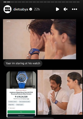 हुआ ये है कि दीपिका पादुकोण ने अपने ब्यूटी ब्रांड को प्रमोट करने के लिए एक वीडियो बनाया. इसमें शाहरुख खान अलग-अलग तरह के ब्यूटी प्रॉडक्ट ट्राय कर रहे हैं. मज़ेदार वीडियो है. यहां दीपिका अपने ब्रांड का प्रमोशन करना चाह रही हैं, पब्लिक की गरारी उस ब्लू घड़ी पर अटकी हुई है. एक सोशल मीडिया इंफ्लूएंसर हैं या कहें कि DietSabya. फैशन वगैरह से जुड़ी चीज़ें भी उनके पेज पर आती हैं. लोगों ने शाहरुख की घड़ी देखकर डायट सब्या से उसके बारे में पूछना शुरू कर दिया.