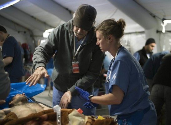 अमेरिकन मेडिकल वॉलेंटियर, मोसुल के बाहर मरीजों को देखते हुए