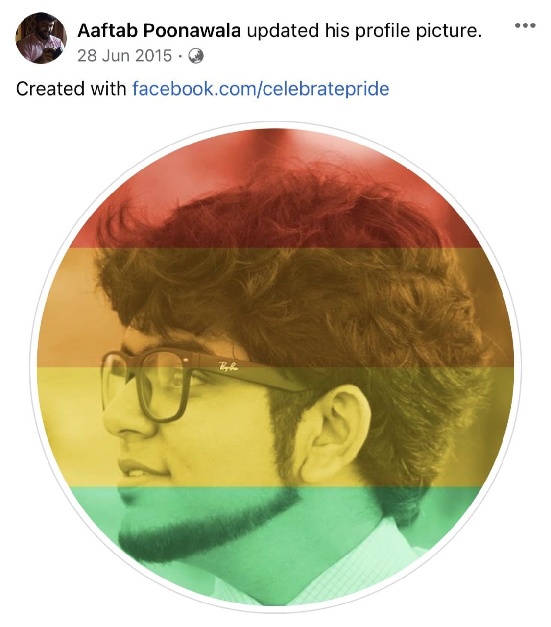 28 जून 2015 को आफ़ताब ने अपनी फ़ेसबुक की प्रोफ़ाइल पिक्चर में बदलाव किए थे, जिसमें LGBTQIA+ का प्राइड फ़िल्टर लगाया था. प्राइड का मतलब लेस्बियन, गे, बाई-सेक्शुअल, ट्रांसजेंडर के गौरव और आंदोलनों का प्रतीक.