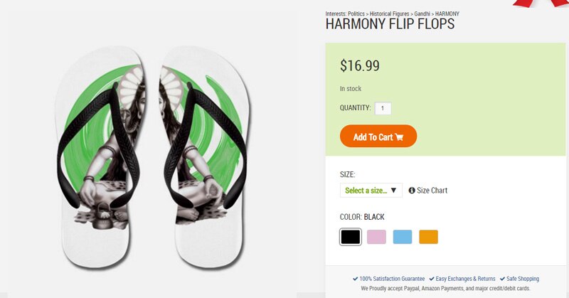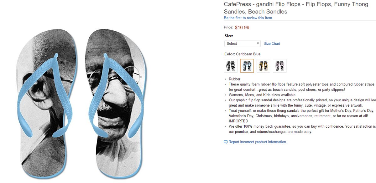 ये चप्पलें कैफ़े प्रेस की हैं, ये एक ऑनलाइन गिफ्ट शॉप है. केंटुकी में इसका हेडक्वार्टर है. ये लोग तो भगवान शंकर वाली चप्पलें भी बेचते हैं.