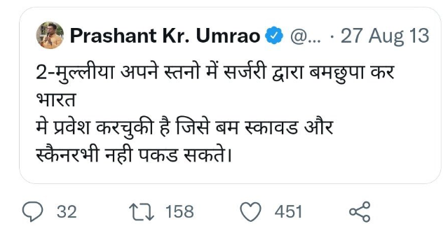 इसी तरह प्रशांत ने साल 2013 में एक और विवादित ट्वीट किया.
