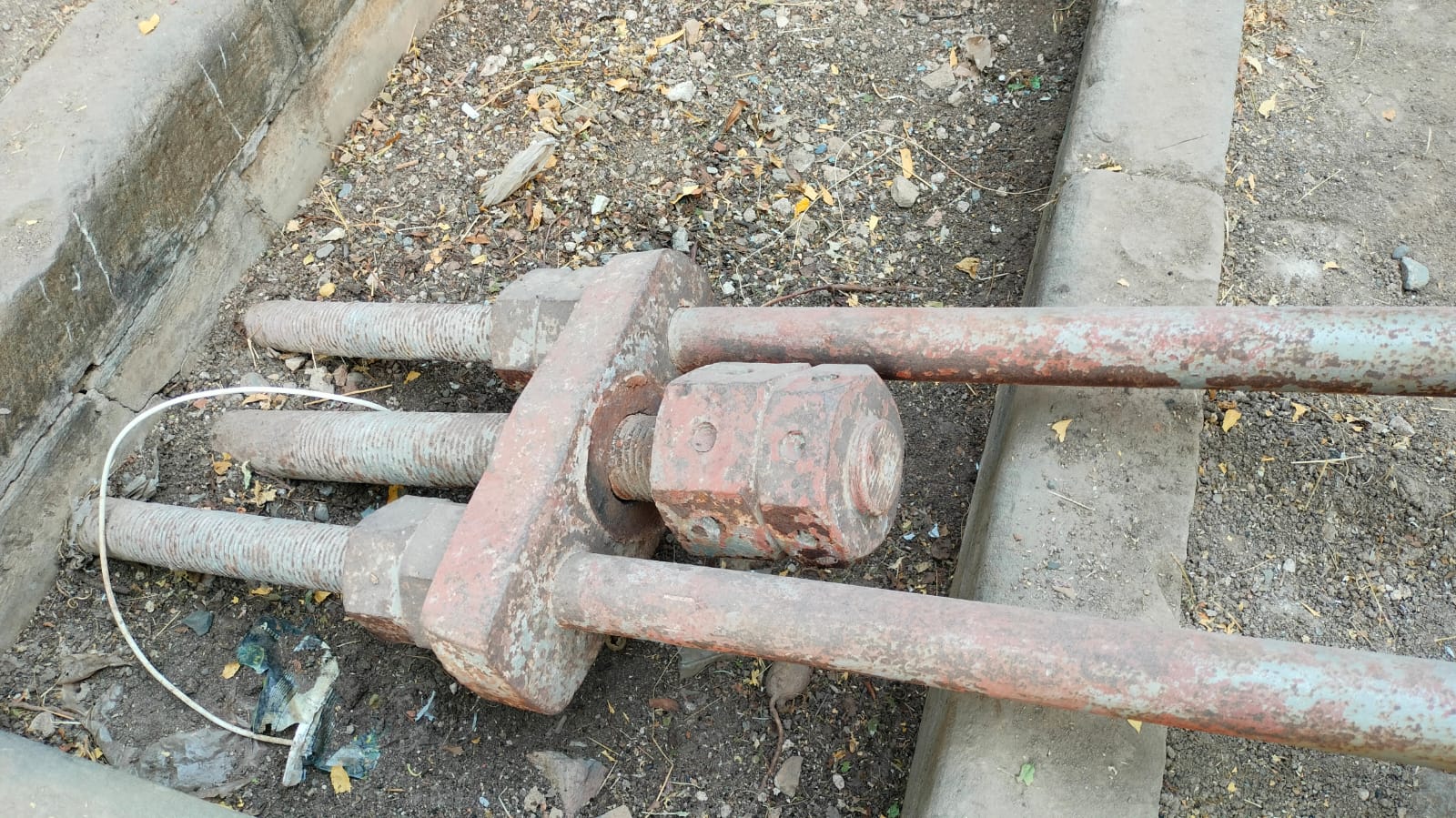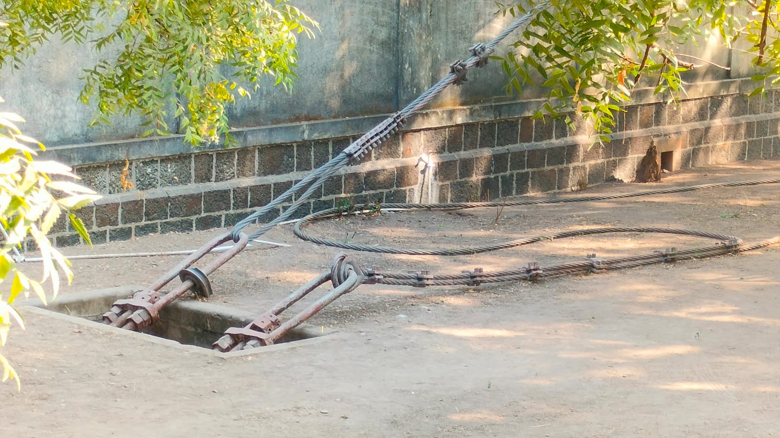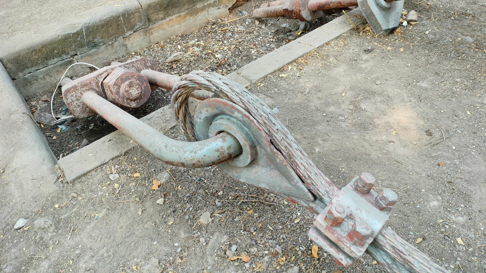 एक दूसरी तस्वीर में एंकर का वो हिस्सा दिखाई देता है जो जमीन से जुड़ा हुआ है. जमीन से जुड़ा हिस्सा भी पूरी तरह सूखा है. मानो ब्रिज का सारा बोझ जमीन के हिस्से आ गया हो. एंकर क्लिप का हिस्सा जिस जगह जमीन से जुड़ा है वहां एक पत्थर भी चटका हुआ है. जंग खाए हुए तारों व एंकर क्लिप का पूरा भार इन्ही पत्थरों के सहारे था.