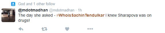 दरअसल ट्विटर पे ट्रेंड हो रहा है #WhoIsSachinTendulkar वजह? वजह हैं मारिया शारापोवा. मारिया जो हाल-फिलहाल में न्यूज़ में बनी हुई हैं. अपने ड्रग टेस्ट की वजह से. वो ड्रग टेस्ट में फेल भी हो गयीं थीं