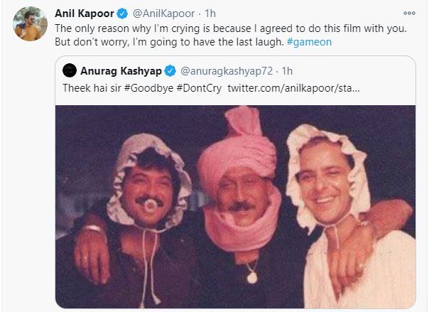 मेरे रोने का सिर्फ एक कारण है कि मैं इस फिल्म को आपके साथ करने के लिए सहमत हूं. लेकिन चिंता मत करो, मैं आखिरी बार हंसने जा रहा हूं.फिर अनिल कपूर ने आखिरी ट्वीट करते हुए लिखा-