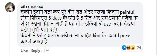 एक और भैया कहते हैं कि इस कप को बनाना बड़ा आसाना है, 400 रुपये में तो महंगा पड़ेगा. भैया दुनिया की सभी महिलाओं को आप पर गर्व है. अक्षय कुमार ने जिस तरह पैडमैन का रोल किया था, वैसे ही आप कप मैन बन जाइए. हम लड़कियों को सस्ते कप्स उपलब्ध करवाइए. एक दिन अक्षय आप पर भी फिल्म बनाएंगे. लेकिन बस याद दिला दूं कि पीरियड में ब्लड इन्वॉल्व होता है. तो जी कड़ा रखिएगा.