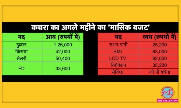 # मैं अगले महीने 1.26 लाख रुपये दुकान से कमा लूंगा # 42 हजार रुपये किराए से # 50 हजार 400 रुपये सैलरी मिलेगी # 33 हजार 600 रुपये की FD मैच्योर होगीखर्च वाले कॉलम में वो लिखता है-