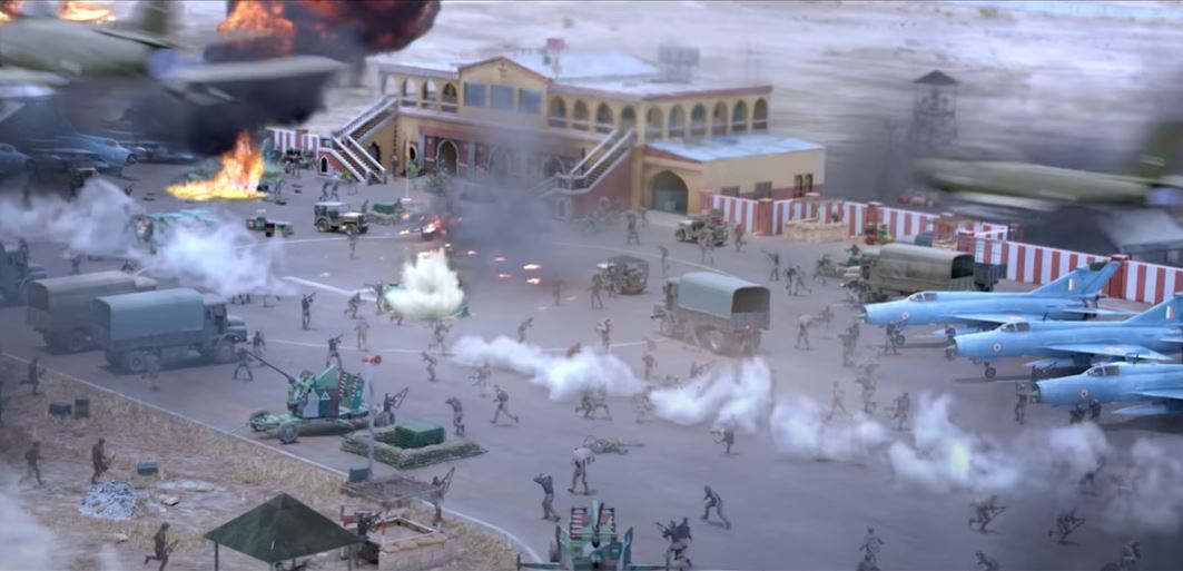 बम गिरता है सब भस्म हो जाता है. लेकिन झंडा खड़ा रह जाता है, ट्रक उड़ जाता है लेकिन झंडे को कुछ नहीं होता. ये सीन्स कितने ज्यादा नकली लगते हैं! ऊपर से पंचलाइन्स.