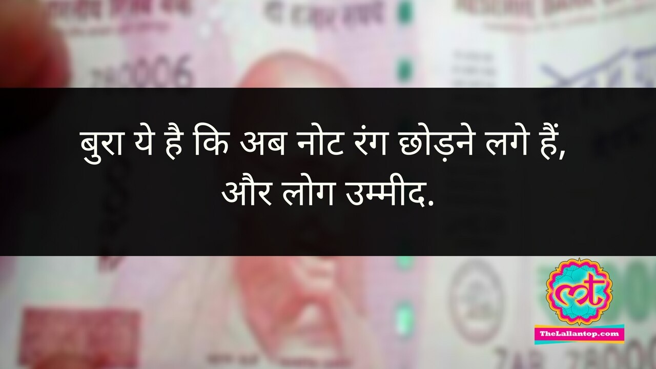 शक्तिकांत दास, आर्थिक मामलों के सचिव हैं. टीवी पर आए और नए नोटों के बारे में बताए. कहा जो नए नोट हैं, असली नोट हैं, वो रंग छोड़ेंगे ही. जैसे खराब माल बेचने वाला दुकानदार कहता था, ऊन अच्छी क्वालिटी का है. ज्यादा पहनेंगे तो रोयें छोड़ेगा ही. नोट से सब हैरान है, नया-पुराना, कम-ज्यादा सब परेशान करे है लेकिन मजे लेने वाले रुक थोड़े रहे हैं. हंसी की नई खेप ये आई है. लोग कह रहे हैं, जिस नोट पर सोनम गुप्ता बेवफा है नहीं लिखा है, वो भी नकली है.