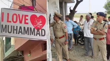 उत्तर प्रदेश में एक बार फिर 'I Love Muhammad' को लेकर तनाव पैदा हो गया है. शनिवार, 25 अक्टूबर को अलीगढ़ जिले के भगवानपुर और बुलकीगढ़ गांवों में पांच मंदिरों की दीवारों पर किसी ने ‘I Love Muhammad’ लिख दिया. ये देखकर गांव वाले भड़क गए और उन्होंने तुरंत पुलिस को इसकी सूचना दी. मौके पर भारी पुलिस बल तैनात कर दिया गया.