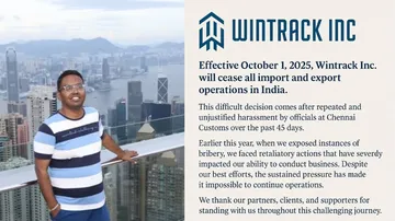 क्या है पूरा मामला?Wintrack Inc ने बुधवार की सुबह पोस्ट करते हुए लिखा कि 1 अक्टूबर, 2025 से, हमारी कंपनी भारत में इम्पोर्ट या एक्स्पोर्ट का सारा काम बंद कर देगी. उसने आरोप लगाया कि पिछले 45 दिनों से चेन्नई के कस्टम अधिकारी हमें लगातार परेशान कर रहे हैं. कंपनी ने कहा कि इस साल दो बार उनकी रिश्वतखोरी का पर्दाफाश किया, जिससे उन्होंने हमें परेशान करना शुरू कर दिया. इससे भारत में हमारे ऑपरेशन में अड़चनें आईं और हमारे बिजनेस को बड़ा नुकसान हो गया. कंपनी ने कहा है कि हम उन सभी का तहे दिल से शुक्रिया अदा करते हैं, जिन्होंने इस कठिन समय में हमारा साथ दिया.