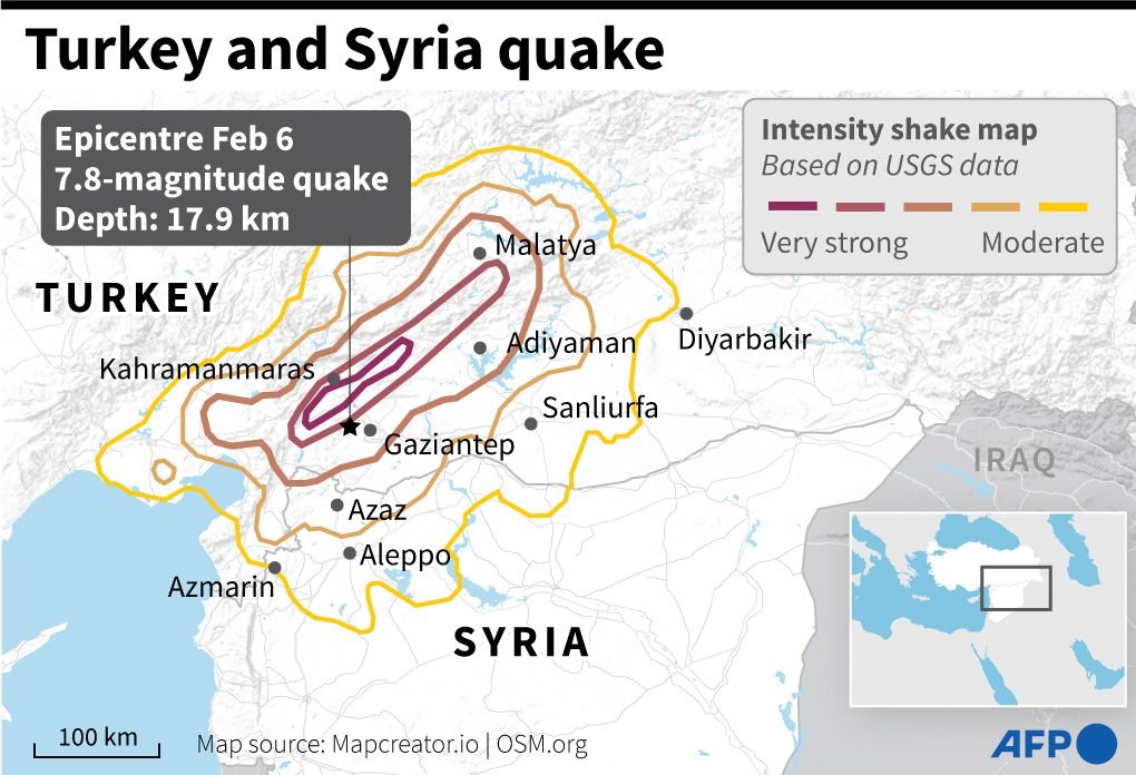 6 फ़रवरी 2023 की सुबह तुर्किए और सीरिया में 04 बजकर 17 मिनट पर भूकंप आया. रिक्टर स्केल पर तीव्रता मापी गई, 7.8. भूकंप का पहला झटका दक्षिणी तुर्किए के गाज़ियनटेप में महसूस हुआ. हालांकि, बाद में झटके आस-पास के कई शहरों के अलावा सीरिया, लेबनान, इज़रायल और साइप्रस में भी महसूस किए गए. सबसे ज़्यादा नुकसान तुर्किए और सीरिया में देखा गया. वहां पूरे दिन ऑफ़्टरशॉक्स आते रहे. जिसके कारण राहत अभियान चलाने में मुश्किल आई. और, हताहतों की संख्या भी बढ़ती गई. मीडिया रपटों के अनुसार, 05 हज़ार लोगों की मौत की पुष्टि हुई. यूनाइटेड नेशंस (UN) का दावा, अंतिम आंकड़ा 20 हज़ार के पार जा सकता है.