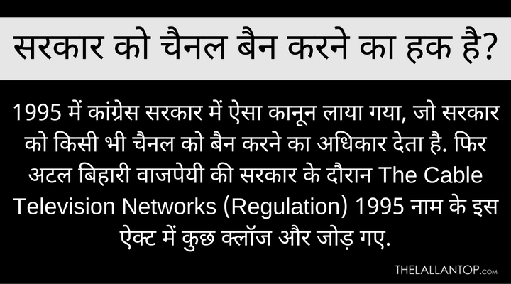 अव्वल तो ये कि इससे पिछली सरकार के समय में 'जनमत टीवी' को छोड़कर एक भी न्यूज चैनल को बैन नहीं किया गया. वे फिल्मों और मनोरंजन के दूसरे चैनल थे. 'जनमत टीवी' वाला केस बेहद लापरवाही भरा था और उसमें एक बेकसूर महिला को एक बेहद गंभीर और घिनौने अपराध में फंसाने की कोशिश की गई थी. ये एक संपादकीय भूल थी और सरकार ने इस पर बड़ा फैसला लिया.