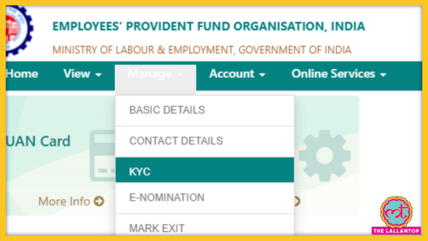 मैनेज पर क्लिक करके के बाद KYC पर क्लिक करें.
