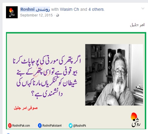 पाकिस्तान के राइटर हैं क़ाज़ी अब्दुल जलील. वैसे जाने जाते हैं सूफी अमर जलील के नाम से. रोजाना पाकिस्तानी न्यूज़ पेपर में उनके कॉलम छपते हैं. एक बार उन्होंने बोल दिया कि जब मूर्ति पूजा करना बेवकूफी है, तो शैतान को पत्थर मारना कौन सी दानिशमंदी है. मतलब कौन सी समझदारी है. इस बात को फेसबुक पर लगा दिया ROSHNI नाम के पेज ने. बस फिर क्या था शुरू हो गई बहस.