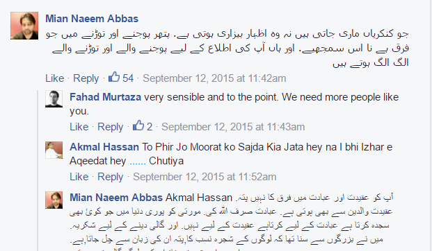 फहद मुर्तजा इसके जवाब में लिखते हैं, 'तो फिर जो मूरत को सजदा किया जाता है, वो भी तो अकीदत (आस्था) है.'