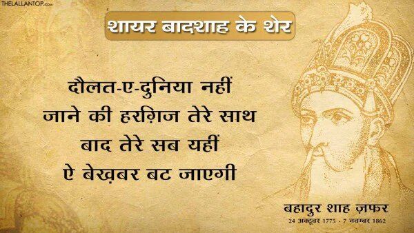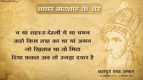 बहादुर शाह ज़फ़र (तस्वीर: विकीमीडिया)हडसन या बाकी अंग्रेजों को भी हिंदी उर्दू का ज्ञान हो चला था. क्यूंकि उन्हें यहीं रहना और यहीं की अवाम पर राज करना था. बहरहाल बहादुर शाह ज़फ़र, जो न केवल शेरो-शायरी को एप्रीशिएट करते थे, बल्कि खुद भी काफ़ी अच्छे शायर थे, ने मेजर हडसन को जवाब दिया-