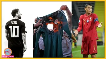 Lionel Messi और Cristiano Ronaldo के बीच में दिख रहा बंदा इन क्लबों में से एक Liverpool की Jersey जला रहा है (एपी/गेटी तस्वीरें)