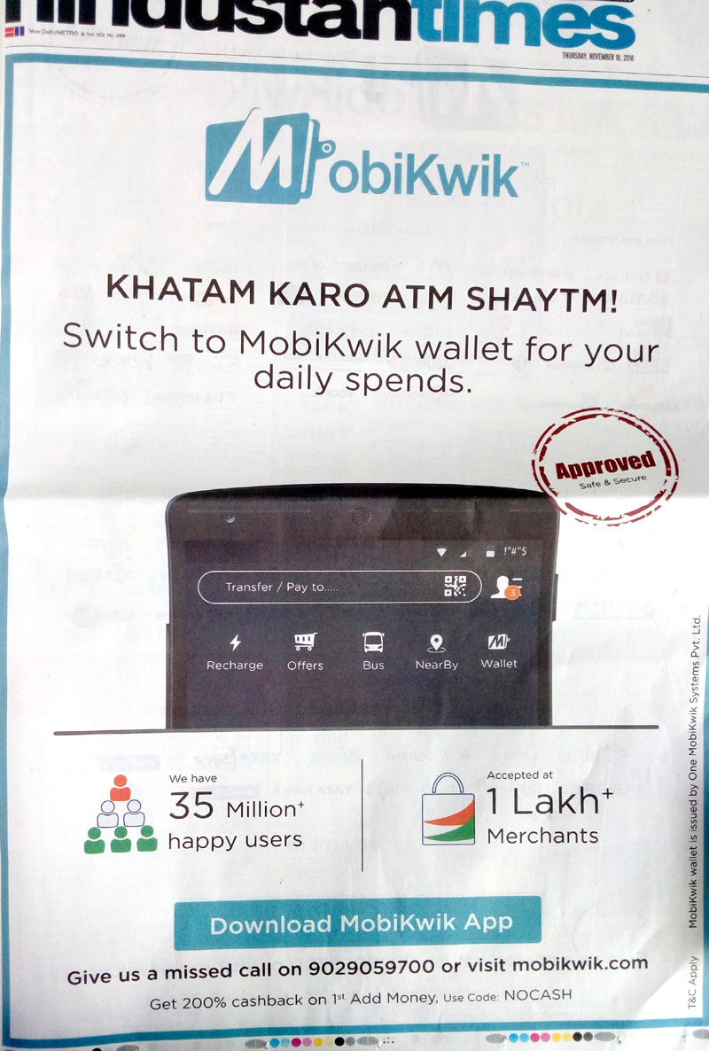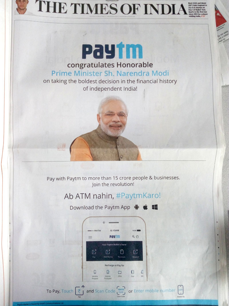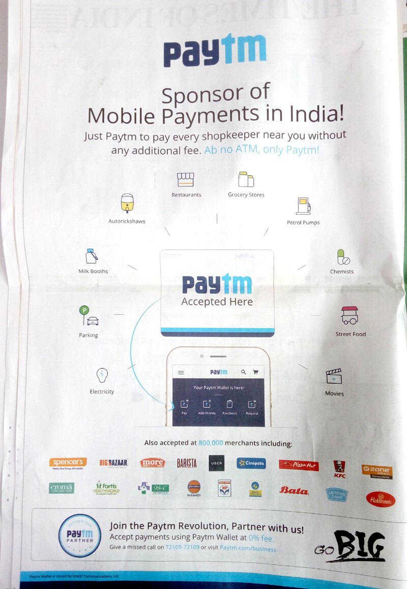 9. इंडिया में ऑनलाइन पेमेंट की सबसे फेमस ऐप पेटीएम ने तो रिलायंस की तरह सीधे प्रधानमंत्री नरेंद्र मोदी की तस्वीर ही छाप दी अपने ऐड के साथ. इसके ऐड में ऑनलाइन पेमेंट को बढ़ावा दिया जा रहा है और कंपनी बता रही है कि इससे आठ लाख से ज्यादा जगह पर पेमेंट किया जा सकता है.