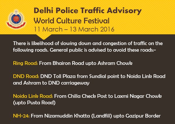 अच्छा है, शादी का सीजन चल रिया है. श्री श्री रविशंकर का प्रोग्राम भी शुक्रवार को ही होना है. यानी सड़कों पर भीड़ भी खूब रहेगी. गाड़ियां आएंगी एवं जाएगी. इसलिए दिल्ली ट्रैफिक पुलिस ने एडवाइजरी जारी कर दी है. इन रास्तों से बचें. या इन रास्तों से आएं-जाएं.