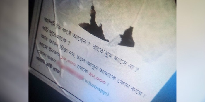 इस पोस्टर में लिखा है, ‘क्या आप कष्ट में हो? क्या आपको रातों को नींद नहीं आती है? क्या आपकी बीवी आपसे दूर है? चिंता मत कीजिए, आ जाइए मेरे पास, मैं बृष्टि रॉय, चार्जेस- 20,000’