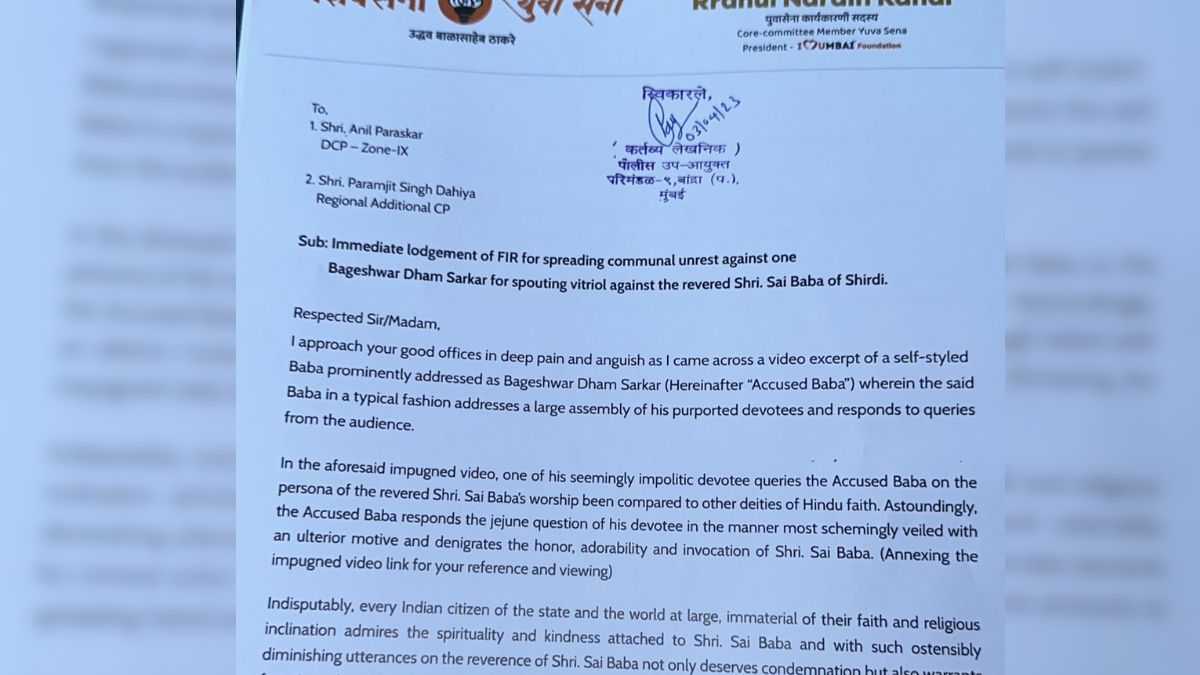 बागेश्वर वाले धीरेंद्र कृष्ण शास्त्री का एक बयान चर्चा में है. बयान है शिरडी के साईं बाबा को लेकर. यह मामला मुंबई पुलिस के पास पहुंच गया है. शिवसेना उद्धव बालासाहेब ठाकरे पार्टी युवा सेना के नेता और आदित्य ठाकरे के करीबी दोस्त राहुल कनल ने धीरेंद्र कृष्ण शास्त्री के खिलाफ बांद्रा पुलिस को शिकायत दी है. इसमें धार्मिक भावनाओं को आहत करने के आरोप में एफआईआर दर्ज करने की मांग की गई है. राहुल कनल ने कहा है कि धीरेंद्र शास्त्री पहले भी ऐसे बयान दे चुके हैं, उनका दिमागी संतुलन ठीक नहीं है.