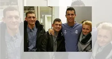 कोमा से बाहर आए डेविड (बाएं से दूसरे) की फैमिली के साथ रोनाल्डो.