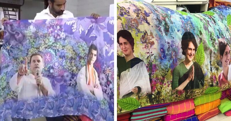 2019 का लोकसभा चुनाव सिर पर है. राजनैतिक पार्टियां और उसके समर्थक अलग-अलग तरीके से प्रचार करने में जुटे हुए हैं. सोशल मीडिया से लेकर डोर टू डोर कैंपेन चल रहा है. ऐसे ही कैंपेन में बाजार भी शामिल हो गया है. अब बाजार में नेताओं की तस्वीरों वाली साड़ियां आ गई हैं, जो खूब बिक रही हैं.साड़ी पर छपे राहुल और प्रियंका