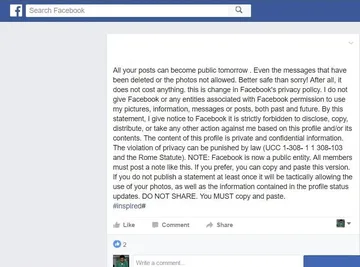 All your posts can become public tomorrow . Even the messages that have been deleted or the photos not allowed. Better safe than sorry! After all, it does not cost anything. this is change in Facebook's privacy policy. I do not give Facebook or any entities associated with Facebook permission to use my pictures, information, messages or posts, both past and future. By this statement, I give notice to Facebook it is strictly forbidden to disclose, copy, distribute, or take any other action against me based on this profile and/or its contents. The content of this profile is private and confidential information. The violation of privacy can be punished by law (UCC 1-308- 1 1 308-103 and the Rome Statute). NOTE: Facebook is now a public entity. All members must post a note like this. If you prefer, you can copy and paste this version. If you do not publish a statement at least once it will be tactically allowing the use of your photos, as well as the information contained in the profile status updates. DO NOT SHARE. You MUST copy and paste.एक बात बता दें. UCC 1-308- 1 1 308-103 और Rome Statute सर्च करना. पता लगेगा आज से चार साल पहले भी यही चल रहा था. दो साल पहले भी और अब भी. फेसबुक को कहीं कुछ नहीं हो रहा. कोई तुम्हारे मैसेज पब्लिक न करेगा. और एक बात बताएं आपको क्या लगता है. आप फेसबुक पर अपडेट करेंगे और फेसबुक नीतियां बदल लेगा. मने सीरियसली यार एक बात बताओ. जकरबर्ग वहां बैठा तुम्हारा स्टेटस पढ़ रहा होगा. और डर जाएगा कि तुमने उसे किसी कानून का आर्टिकल बता डराया है. और जिस-जिसने अपडेट किया है. उसका न बदलेगा. बाकी सबकी अपडेट पब्लिक कर देगा. प्राइवेसी सेटिंग में जाओ. सारी अपडेट ओनली मी कल्लो. कोई न देख पाएगा. ये स्टेटस चेंपकर कोई फायदा न होगा.