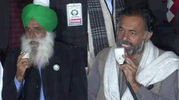 मीडिया से बात करते किसान नेता जगजीत सिंह बाएं और योगेंद्र यादव दाएं. फोटो- ANI