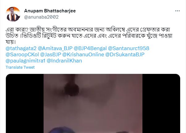 हम यहां साफ कर दें कि 30 सेकंड के इस वीडियो के पूरे बैकग्राउंड की जानकारी नहीं है. व्यक्तिगत बातचीत में कभी-कभी ऐसी चीजों पर भी हंसी-मजाक हो जाता है, जिनका सम्मान करना अनिवार्य होता है. राष्ट्रगान के मामले में भी ऐसा है. लेकिन हंसी-मजाक में उसे गाते हुए वीडियो बन जाने पर बवाल हो गया है. बंगाल में बीजेपी के नेता अनुपम भट्टाचार्य ने वीडियो को ट्वीट कर लिखा,