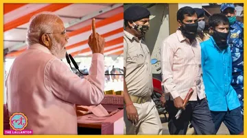(बाएं) पीएम मोदी की एक पुरानी तस्वीर. (दाएं) धमाके के दो दोषियों को ले जाती पुलिस. (तस्वीरें- पीटीआई)