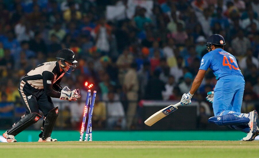 मिनटों के अन्दर रोहित शर्मा भी निकल पड़े. सेंटनर की बेहतरीन गेंद थी. पिच पे आगे निकल आये रोहित और बल्ले का फ़ेस बंद कर दिया. गेंद पिच करके अच्छी-खासी घूम पड़ी. कीपर ने बमुश्किल कलेक्ट करके स्टम्प कर दिया.