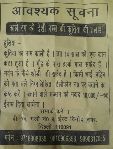 पर हम आपकी भावनाओं की कद्र करते हैं. खासतौर पर इस इश्तहार की. जो दिखाता है फोटो नहीं है तो क्या आपकी भावना क्या है. कुत्ते को खोजने की कोशिश तो की. किसी भाई-बहन को इनकी काली मिले तो पहुंचा दें. और 10 हजार का इनाम न लें तो लल्लन को अच्छा लगेगा.