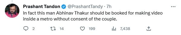 लेकिन ऐसा हर कोई सोचे ये जरूरी नहीं. जैसे अभिनव ठाकुर को इन दोनों युवाओं का इस तरह बैठना अच्छा नहीं लगा. अब उन्हें अच्छा नहीं लगा यहां तक तो क्या ही कहें. लेकिन वो इतना दुखी हो गए कि दोनों युवाओं की सहमति लिए बिना ही उनका वीडियो बनाया, ट्विटर पर डाला और DMRC के डीसीपी को टैग करते हुए लिख दिया,