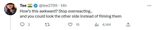 "ये ऑकवर्ड कैसे हुआ? ओवररिएक्ट करना बंद करो. आपको उनका वीडियो नहीं बनाकर दूसरी ओर भी देख सकते थे."