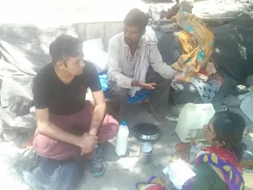 We spoke to the women about what they want and what made them come here. It was harrowing to hear them talk about basic needs. How their fields are all dead, their cattle are dead and so is their spirit. As we moved past them, we saw a 1-2 year-old kid crying. We looked around but we couldn’t find anyone. Randeep picked him up and put him back on the kid’s gunny bag rug/bed/house. He stopped crying. His father was out to find work. Mother had gone to get water and she had to leave him there in the hot son. His mother made him sleep on this rug under a small tarpaulin flag. He got up and walked past it not realizing his feet were burning because of the hot ground. That's why he was crying.