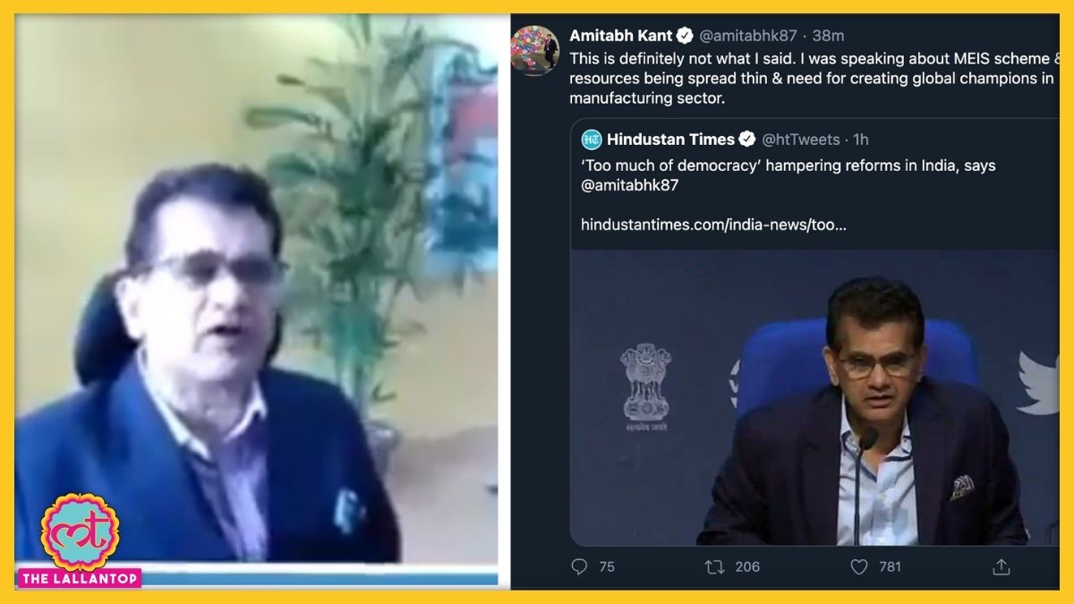 हालांकि अमिताभ कांत की इन सब बातों पर उनका लोकतंत्र पर दिया बयान भारी पड़ रहा है. उनकी लाख सफाई के बावजूद ट्विटर पर लोग वह वीडियो शेयर हो रहा है, जिसमें वह we are too much of democracy बोलते साफ दिखाई दे रहे हैं.