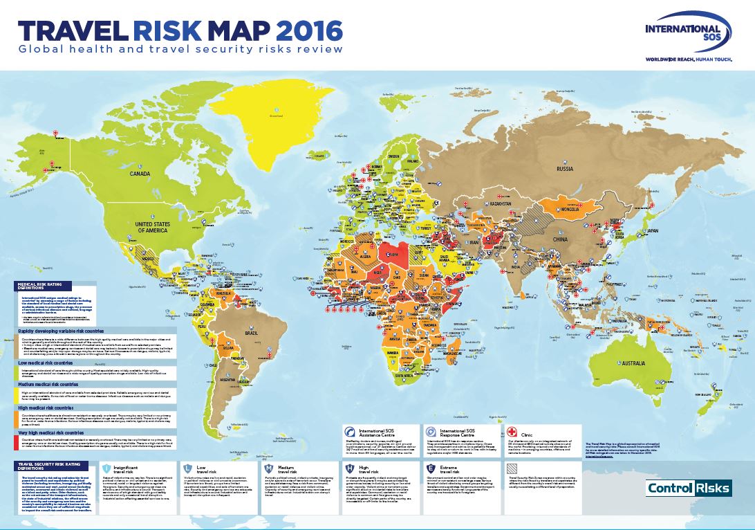 विश्व की सबसे बड़ी मेडिकल और ट्रैवल सिक्योरिटी फर्म है, SOS इंटरनेशनल. उसने एक मैप रिलीज किया है. इसमें घूमने के लिहाज से विश्व के सबसे खतरनाक देशों के बारे में बताया गया है. टूरिस्टों को इन जगहों पर जाने से पहले दस बार सोचना चाहिए. सबसे ज्यादा खतरनाक जगहें हैं- सीरिया, अफ़ग़ानिस्तान, यमन और माली.