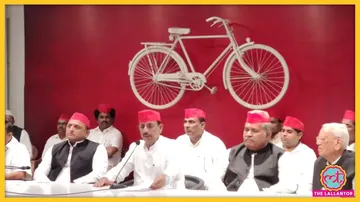 आरएस कुशवाहा (माइक पर बोलते) सपा में शामिल हो गए हैं. (फोटो- The Lallantop)