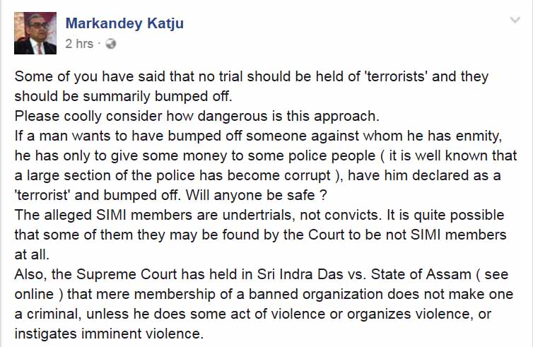 सुप्रीम कोर्ट के जज रहे मार्कंडेय काटजू ने फेसबुक पर लिखा: