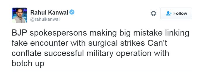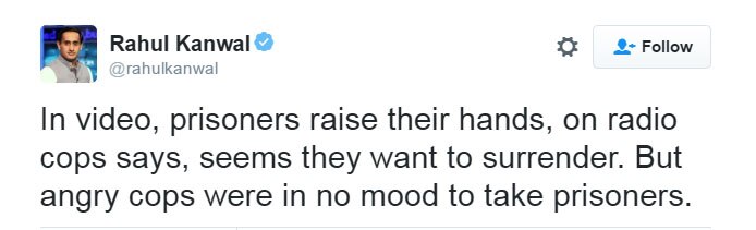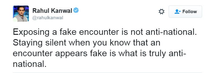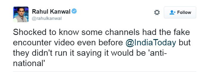 शिरीष के अलावा और भी बहुत से लोगों ने बहुत वाजिब टिप्पणियां की हैं. जैसे इंडिया टुडे के राहुल कंवल ने इस और ध्यान दिलाया कि कुछ चैनलों के पास फेक एनकाउंटर का वीडियो इंडिया टुडे से भी पहले से था लेकिन उन लोगों ने इसे चलाया नहीं क्योंकि उनके मुताबिक ऐसा करना 'एंटी-नेशनल' होगा.