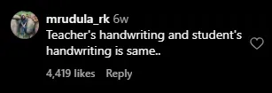 “टीचर की राइटिंग और स्टूडेंट की राइटिंग एक जैसी है.”