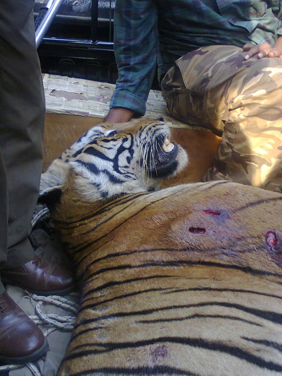 दो लाशें वहां पड़ी थीं. एक टाइगर की, एक गाय की. जश्न का माहौल था. टाइगर की लाश एक लकड़ी पर उल्टी लटकाई गई और उसके आगे-पीछे एक जुलूस चल निकला.