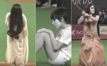 पहले एक भूतनी आई. उसका नाम था सादाको. सफेद कपड़े पहने, लंबे बाल जो मुंह की तरफ झूल रहे थे. बांए हाथ में ग्लव्स पहनी हुई थी और दांए हाथ में बॉल पकड़ी. दूसरी आई लाल कपड़ों में. वो थी कायाको. चेहरे पर खून लगा. और हाथ में बल्ला लिए. उसके साथ एक छोटू भूत भी था. उसका नाम तोशियो था. इनको आते देख चीयरलीडर्स तुरंत ग्राउंड से नौ-दो-ग्यारह हो गई.