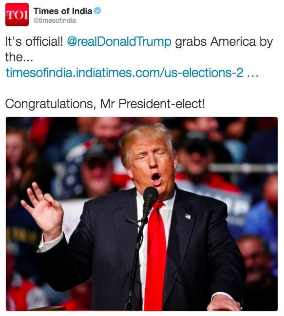 डॉनल्ड ट्रम्प जीते. और जिस तरह उसे टाइम्स ऑफ़ इंडिया ने ट्वीट कर बताया, देखने लायक है.