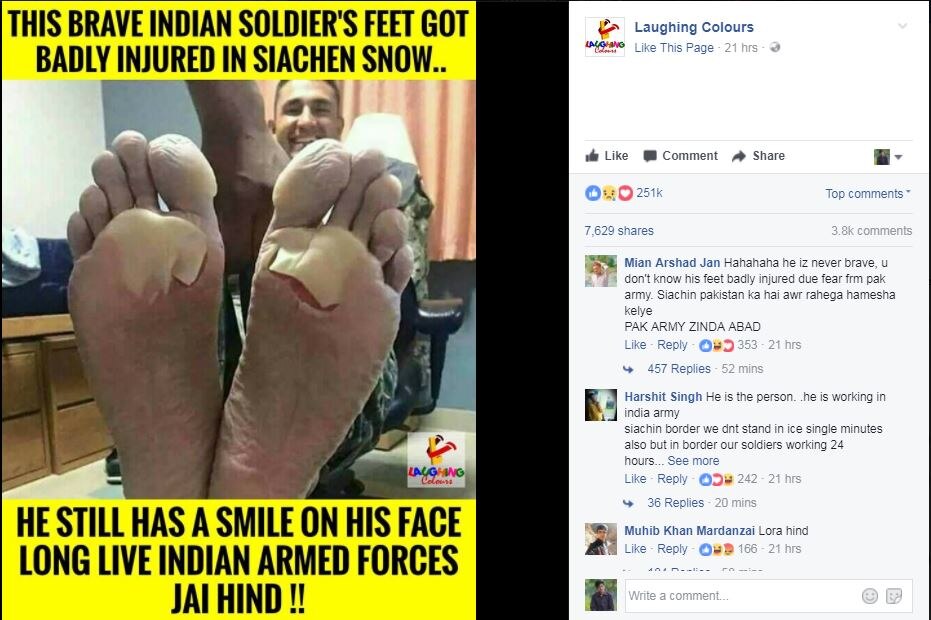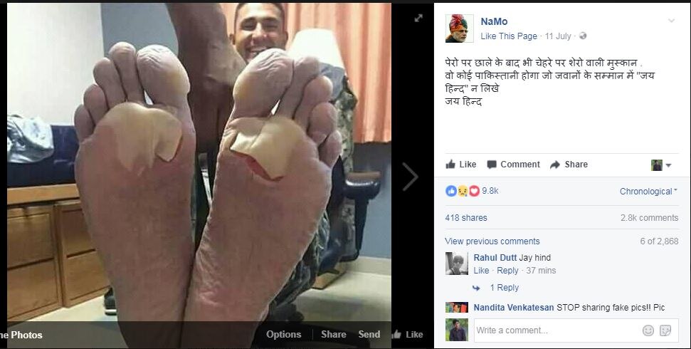 सियाचिन की बर्फ से गले हुए पैर वाले फौजी की फोटो आपने शेयर की?