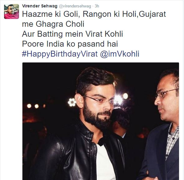 फिलहाल तो आज 'बड्डे बॉय' को हर तरफ से जन्मदिन की शुभकामनाएं मिल रही हैं. कोहली ट्विटर पर काफी एक्टिव हैं. सेल्फी, वीडियो अपलोड करते रहते हैं. तो आज ट्विटर भरा पड़ा है बधाई संदेशों से. देखिए किसने क्या कहा.