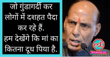 दिन सोमवार का था. गृह मंत्री ने कहा यूपी में बीजेपी की सरकार आने पर ऐसे सभी मामलों में कार्रवाई होगी. इंडियन एक्सप्रेस ने अपनी खबर में लिखा कि उन्होंने कहा है. 'जो लोग गुंडागर्दी कर लोगों में दशहत पैदा कर रहे हैं, हम देखेंगे कि उन्होंने कितना मां का दूध पिया है.' ये भी कहे कि केंद्र में बीजेपी सरकार है लेकिन जब तक राज्य में नहीं है, आप लोगों का कुछ भला होना-जाना नहीं है. ये भी बोले कि इस प्रदेश में नियम कानून रह नहीं गए हैं. लोगों पर फर्जी मुकदमे होते हैं. भाजपा की सरकार बनी तो जांच कराएंगे. लोगों पर दर्ज मुकदमे वापस कराए जाएंगे.