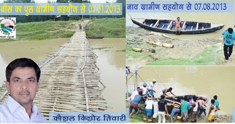 सन 2012. कौशल किशोर तिवारी ने अपने गांव के लोगों को जोड़ा. बतकही हुई. तय हुआ कि चंदा लगे और बांस का पुल बने. बन गया चचरी पुल. 18 हजार रुपए का खर्च आया. 17 हजार बच गया. फिर जोड़ कर एक लाख रुपए में नाव बनाई गई. इतना सब कुछ होने के बाद भी समस्या बहुत ज्यादा हल नहीं हुई. प्लान बनता रहा.