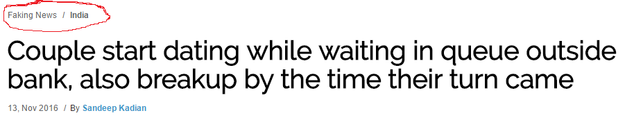 ये गाना सुनते ही दिल में प्यार हिचकोले मारने लगता है. खैर ये लाइनें तो मैंने ऐसी ही लिख दीं. क्योंकि किसी ने ऐसे ही एक लव स्टोरी लिख दी, वो भी फंतासी से भरी हुई. लिखा गया एक लड़का और लड़की पैसे के लिए एटीएम की कतार में लगे थे और प्यार हो गया. फिर शादी भी. कहानी लिखी कोई बात नहीं हैरानी ये है लोगों ने उसे सच समझकर सोशल मीडिया पर शेयर कर दिया.जैसे मुंह सी निकली बात कोठे चढ़कर नाचने लगती है. वैसे ही ये फर्जी स्टोरी व्हाट्सएप पर नाचने लगी. और लोग उनकी मोहब्बत पर रश्क करने लगे. आहें भरने लगे. लेकिन जब सर्च किया तो न पूजा मिली और न विकास. मालूम हुआ एक ऐसी ही स्टोरी फेकिंग न्यूज़ वेबसाइट ने चलाई थी. ये साइट सिर्फ हंसने हंसाने के लिए व्यंग्य टाइप स्टोरी पब्लिश करती है. और लोग उसकी लव स्टोरी को नाम बदलकर ले उड़े. मतलब अजय को विकास बना दिया और सोनिया को पूजा. और उनके इश्क को हकीकी बनाकर सोशल मीडिया पर नचा दिया.